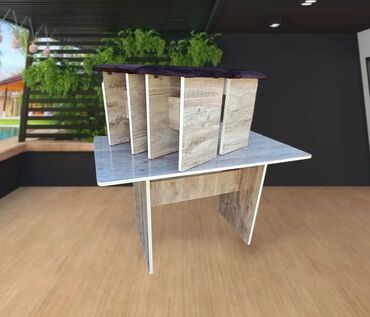 Кухонный комплект: стол + 4 табурета. - Прямоугольный стол из ЛДСП под светлое дерево, с широкой устойчивой столешницей и опорной тумбой. - В комплект входят 4 табурета, которые компактно задвигаю...
