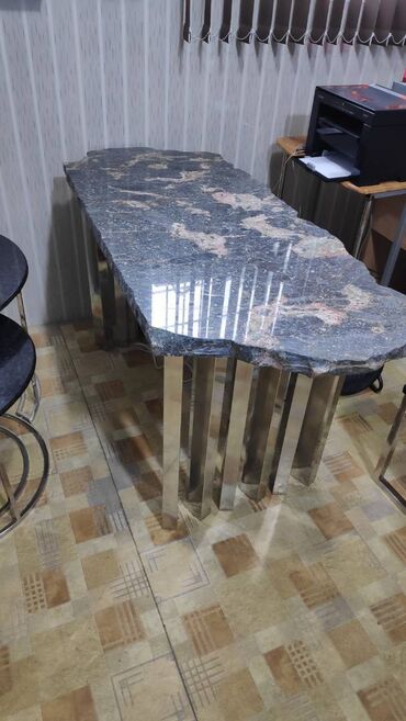 СамовывозСтол со столешнице из натурального камня ( гранит). Ножки из нержавейки. Идеально подойдут для использования вне помещения. (летняя кухня, зона барбекю, садовый стол)