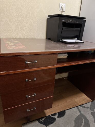 продается письменный стол. состояние хорошее, крепкий. размеры: высота-73см, длина и ширина столешницы: 60х103 см . Цена: 2500 сом