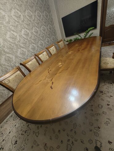 Продаётся раздвижной стол со стульями из натурального дерева DEP. Стол в идеальном состоянии, без изъянов и царапин, раздвигается на пол метра. Стулья (7 штук) — с небольшими, практически незаметны...