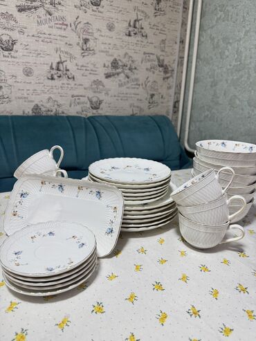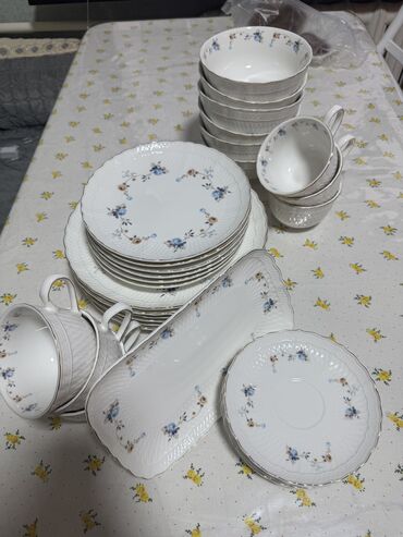 Новое все Столовый комплект + эмалированная кухонная посуда Весь набор всего за 7500 сом Сервиз на 6 персон, 32 предмета, элегантный белый с рифлением и золотистой окантовкой: - 6 больших тарелок...