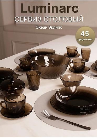 Столовый сервиз Luminarc «Океан Эклипс» — 45 предметов, дымчатое ударопрочное стекло.