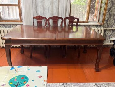 Деревянный стол 3 метра в длину, 1.1 ширина В складном виде длина 2,5 метра. Полностью дерево, хорошего качества Есть небольшой торг Стулья продаются отдельно по 7000 Есть торг, пишите