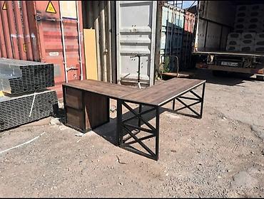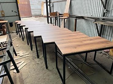 - Прямоугольные столы и угловые рабочие столы на металлическом каркасе.