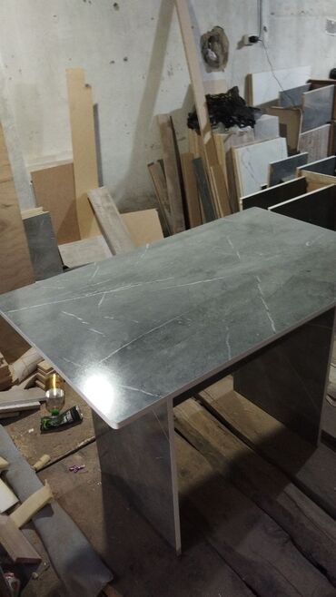 Обеденный комплект стол + табуреты - Комплект: прямоугольный стол и 4 табурета. - Материал: ЛДСП с имитацией камня/мрамора, кромки обработаны. - Столешница прямоугольная, устойчивая опора-тумба. -...
