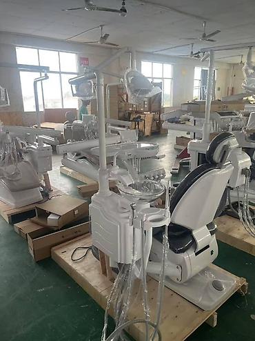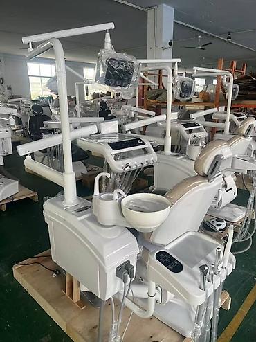 Стоматологическая установка с креслом молочного цвета . Оборудована инструментальным столиком с держателями для инструментов, светильником и регулируемым подголовником. Включает гигиеническую раковину и систему подачи воды для полоскания рта. Удобное и функциональное решение для стоматологического кабинета. в комплекте лампа для пломбы , скейлер и стул врача