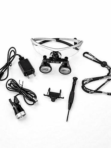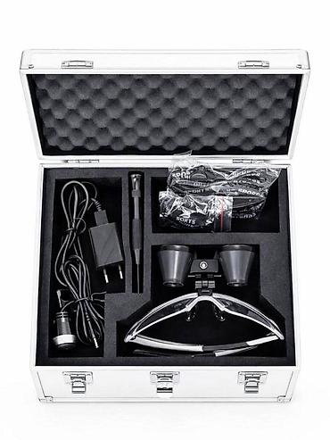Распродажа - Бестеневой налобный осветитель с бинокулярами, линзы - полный комплект в кейсе. Удобное использование в повседневной практике. Полный комплект в наличии. • Увелич...
