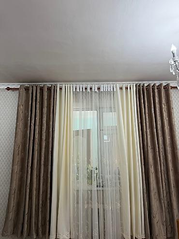 1. тюль-штора, цвет золотистый ширина 6м. высота 2,80 2000сом. 2. шторы высота 2,50 2шт. 800сом. ...