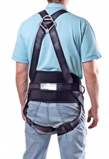 Страховочная привязь с наплечными и набедренными лямками - компонент страховочной системы для охвата тела человека с целью удержания и предотвращения падения с высоты. Высокий прочный кушак обеспечивает максимальное удобство при длительном выполнении работ. Имеет четыре элемента крепления: два D-образных элемента крепления расположены по бокам привязи, одно на спине и анкерная петля на груди. Наличие регулируемых застёгивающих пряжек на наплечных и набедренных лямках позволяет за минимально короткое время подогнать привязь по размеру. Наличие вспомогательной ленты с застёжкой на груди позволяет быстро отстегнуть и пристегнуть привязь. Вес страховочной привязи не более 2,0 кг. Величина обхвата талии, обеспечивающая ремнём:
