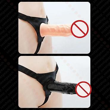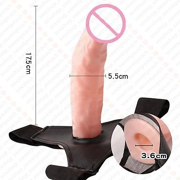 Страпон с отверстием и трусиками из эластичного материала черного цвета. Имеет регулируемые ремешки для комфортной посадки. Искусственный пенис телесного цвета, длиной 18 см, и диаметром 5 см. Подходит для разнообразия интимной жизни.