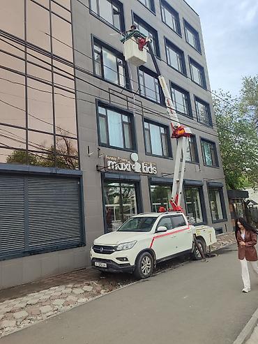 Услуги автовышки. Цена 1300 сомов в час. Высота 12 метров от земли. Грузоподъемность борта 500 кг, грузоподъемность люльки 200 кг. Есть варианты выезда за пределы города Бишкек с Вашей доплатой. Те...