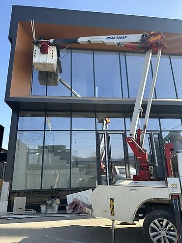 Услуга: аренда автомобильной автовышки (компактный пикап с телескопической/коленчатой башней и корзиной) Особенности и возможности: - Рабочая высота до 12 м (на стреле указано Dinam 120AP). - Гидр...