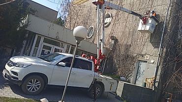 Авто вышка 24/7 услуги автавышки 12 метров подойдёт для монтажа демонтажа электричество распил деревьев утепление домов мойка вассадов вассад мойка окон зданий реклама плакаты баннеры Бишкек межгор...