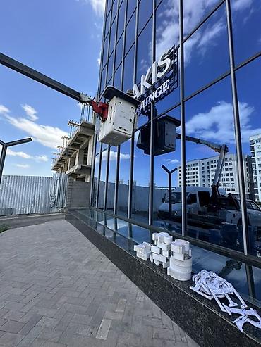 - Работы на высоте: монтаж и демонтаж наружной рекламы, вывесок и световых букв; фасадные и остеклительные работы; обслуживание витражей и окон; электромонтаж на опорах и фасадах; ремонт и мойка фасадов; обрезка деревьев вблизи зданий.