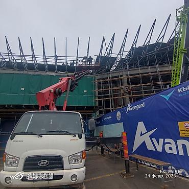 Автовышка (телескопическая вышка на шасси грузовика) - Тип: телескопическая подъемная платформа на автомобиле Hyundai. - Конфигурация стрелы: многоступенчатая телескопическая, с поворотной секцией...