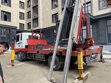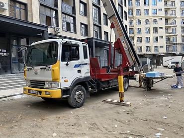 Услуги автолестницы (лифтового подъёмника на шасси Hyundai) для подъёма и подачи стройматериалов на этажи.
