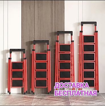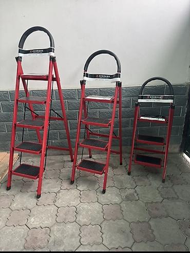 Стремянки складные, усиленные Варианты: - 3 ступени — 3000с - 4 ступени — 3400с - 5 ступеней — 3600с - 6 ступеней — 3900с -7 ступеней - 4200с Характеристики: - Прочная металлическая рама, дуга-руч...