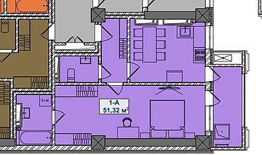 1 комната, 51 м², 8 этаж, Готовая ПСО (под самоотделку)