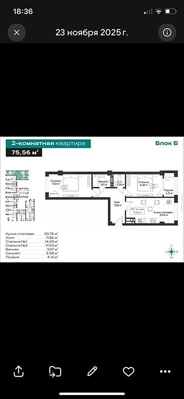 3 комнаты, 96 м²
