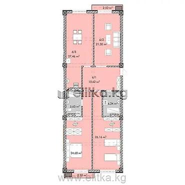 3‑комнатная квартира в ЖК Bashat, 130,02 м² Планировка и метраж: - Прихожая — 13,62 м² - Гостиная — 21,30 м² - Спальня — 24,68 м² - Детская — 26,16 м² - Кухня — 27,46 м² - С/у — 6,34 м² - С/у — 5,...