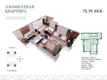3‑комнатная квартира — 78,95 м²