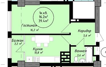 Строится, Элитка, 1 комната, 44 м²