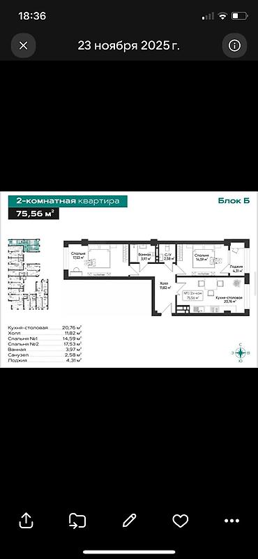• Площадь: 75,56 кв.м