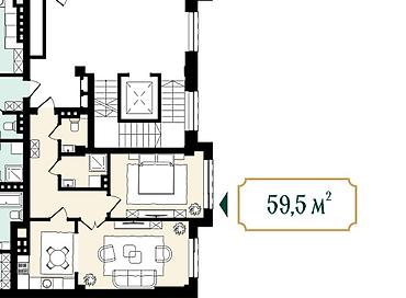 - Площадь: 59,47 м² (на плане — 59,5 м²)