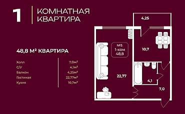 Строится, Индивидуалка, 1 комната, 39 м²