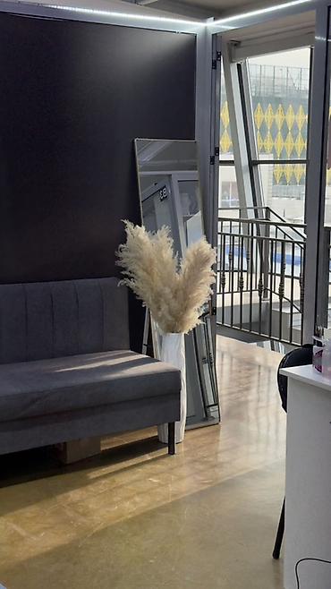 - Комфорт для клиентов: мягкие пледы и полотенца на кушетках, зона ожидания с диваном, большое напольное зеркало.