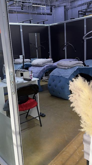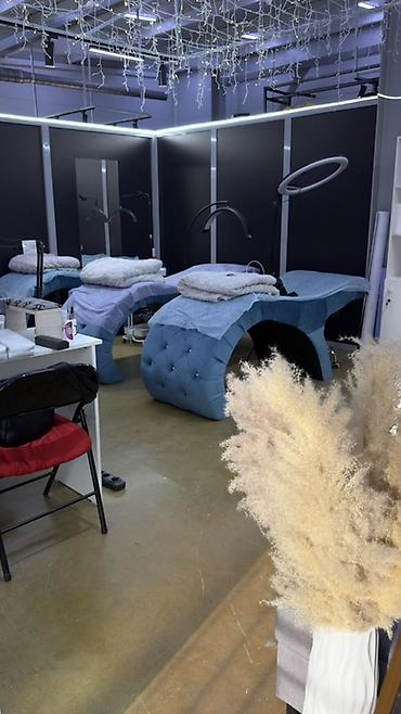 - Оборудование: эргономичные кушетки волнообразной формы с мягкой обивкой, маникюрное место /мастерские тележки, регулируемые LED-лампы-«кольца», столики для инструментов, розетки и удлинители у рабочих мест.