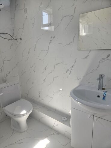 - Чистовая отделка в светлых тонах, плитка под мрамор в санузле