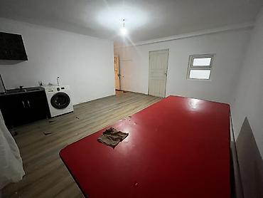 - Открытая зона кухни: напольный кухонный модуль с мойкой, навесной шкаф и стиральная машина