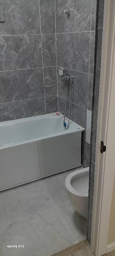 - Полноразмерная ванна с экраном, смеситель с душем на стене.
