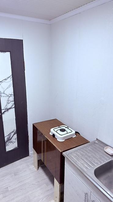 - Планировка: жилая комната с окном и радиатором отопления, отдельная зона под кухню/рабочее место, санузел.