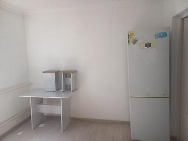 - Кухонная зона: холодильник с морозильной камерой, стол и два табурета.