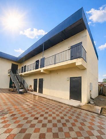 - Двухэтажный блок с внешними входами на этаж, металлическими дверями и перилами.