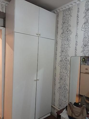 - Вместительный белый шкаф-купе с верхними антресолями и ручками‑кнопками.