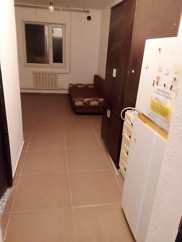 Сдаётся небольшая студия. Планировка: вытянутое помещение с окном, радиатором отопления и отдельным входом. Пол — керамическая плитка. Высокие потолки, проводка под потолочный светильник.
