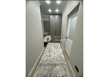 - Отделка: спокойные светлые тона, комбинированные напольные покрытия (ламинат + напольный ковровый дорожник), высокие плинтусы, потолок с точечным и накладным освещением.