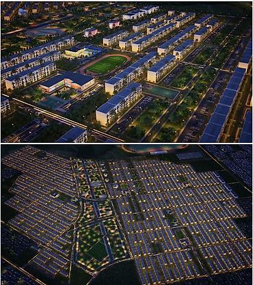 - Современная низкоэтажная застройка, широкие бульвары и озеленённые дворы.
