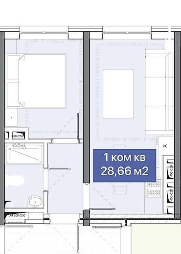 1‑комнатная квартира общая площадь 28,66 м².