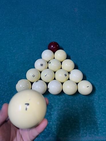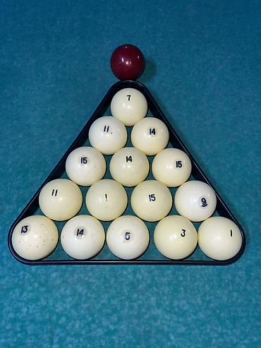 - Полный комплект: 15 пронумерованных белых шаров + 1 бордовый шар (биток/прицельный — в зависимости от правил).