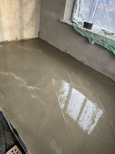- Цементно‑песчаная стяжка пола: выведение уровня по маякам, заливка, затирка под укладку финишных покрытий (плитка, ламинат, паркет и т.д.).