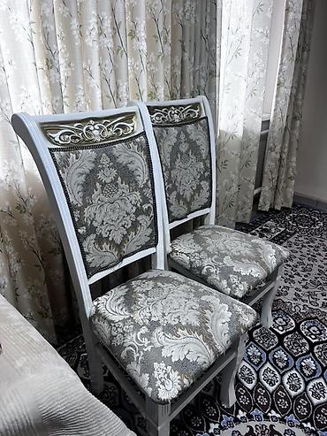 - Спинка высокая, изогнутая, с декоративной резьбой и вставкой с узором.
