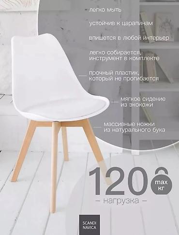 - Материалы: прочный пластик спинки и сиденья, который не прогибается; массивные ножки из натурального бука; мягкое сиденье из экокожи.