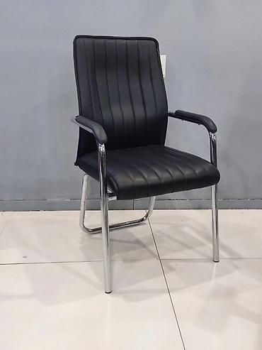 Офисный стул с подлокотниками - Материал обивки: черная экокожа с квадратной прострочкой. - Наполнение: упругая поролоновая подушка сиденья и спинки. - Каркас: стальная рама с хромированным покрыт...