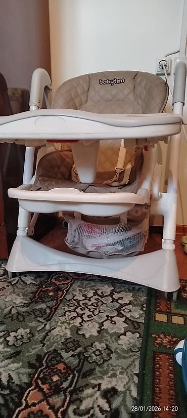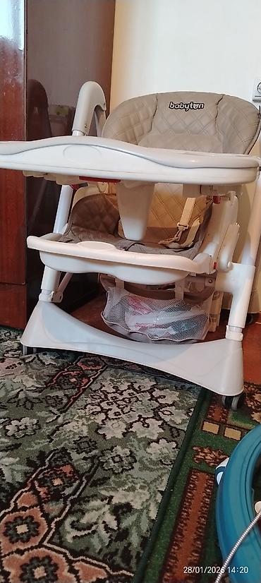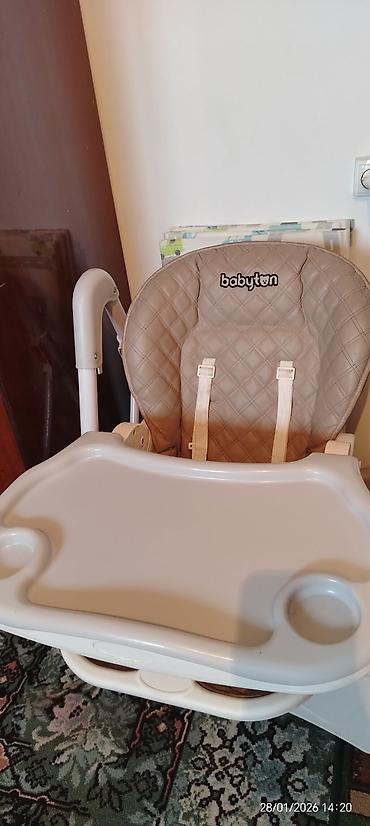 Удобный и функциональный стульчик, подходит для ежедневного кормления и игр ребенка. Бренд Babyton указан на спинке. Дата на фото: 28/01/2026.