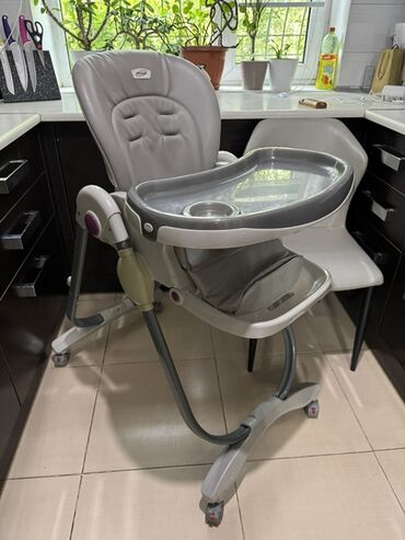 Детский комплект: стульчик для кормления + прикроватная колыбель. Стульчик для кормления: - Регулируемое сиденье с мягким вкладышем. - Спинка с изменяемым наклоном. - Съемный большой столик с борт...