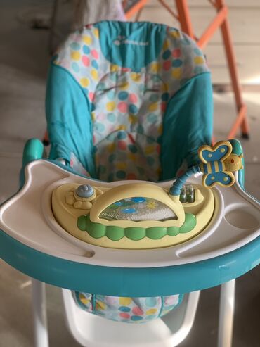 Детский стульчик от babyton для кормления голубого цвета с регулируемой высотой и складной конструкцией. Съемным столиком с углублением для стакана и ремнями безопасности. Под сиденьем расположен...